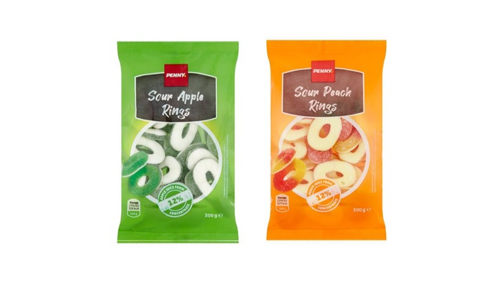 PENNY jeleuri acrisoare in forma de inele cu aroma de mere si piersici 300g