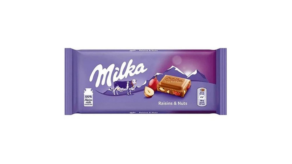 Milka Ciocolata lapte cu stafide si alune maruntite 90 g