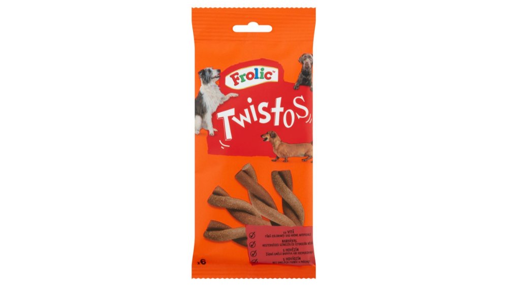 3,98 RON5,69 RONFrolic Twistos hrana complementara cu vita pentru caini adulti 6 buc 105 g