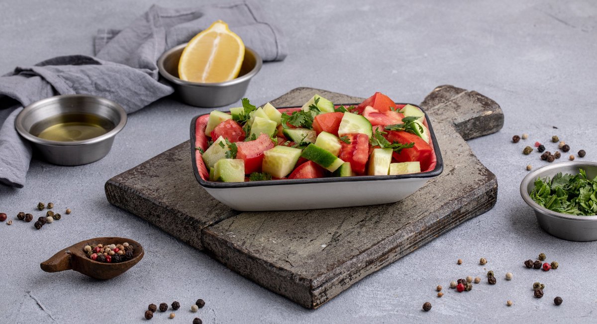 Pomidor, xiyar, soğan, göyərti