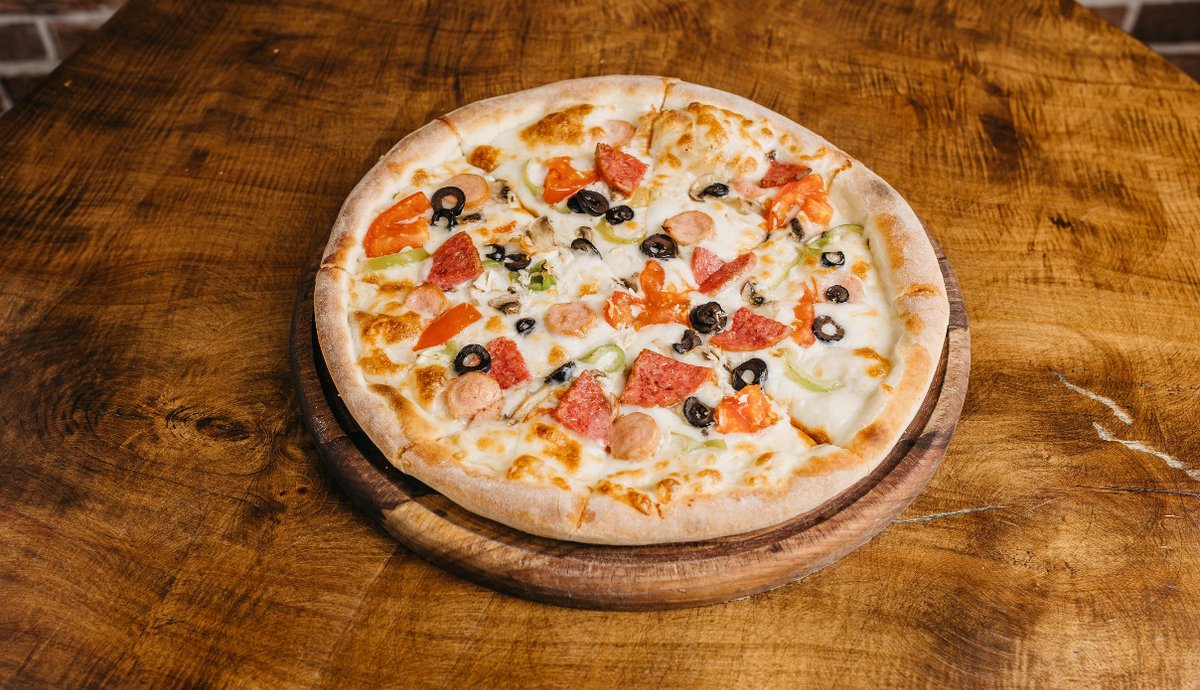 Sosis kolbasa toyuq əti göbələk holland pendiri pomidor yaşıl bibər qara zeytun ketçup