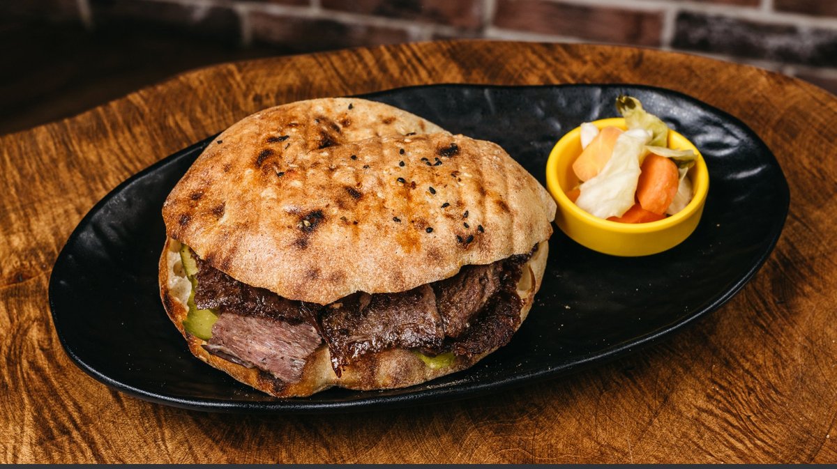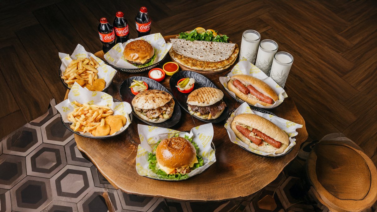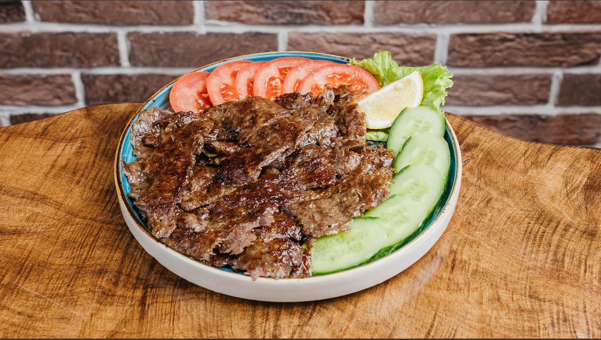 Çoxlu dana əti, çörək, pomidor, xiyar cəfəri ozel sous