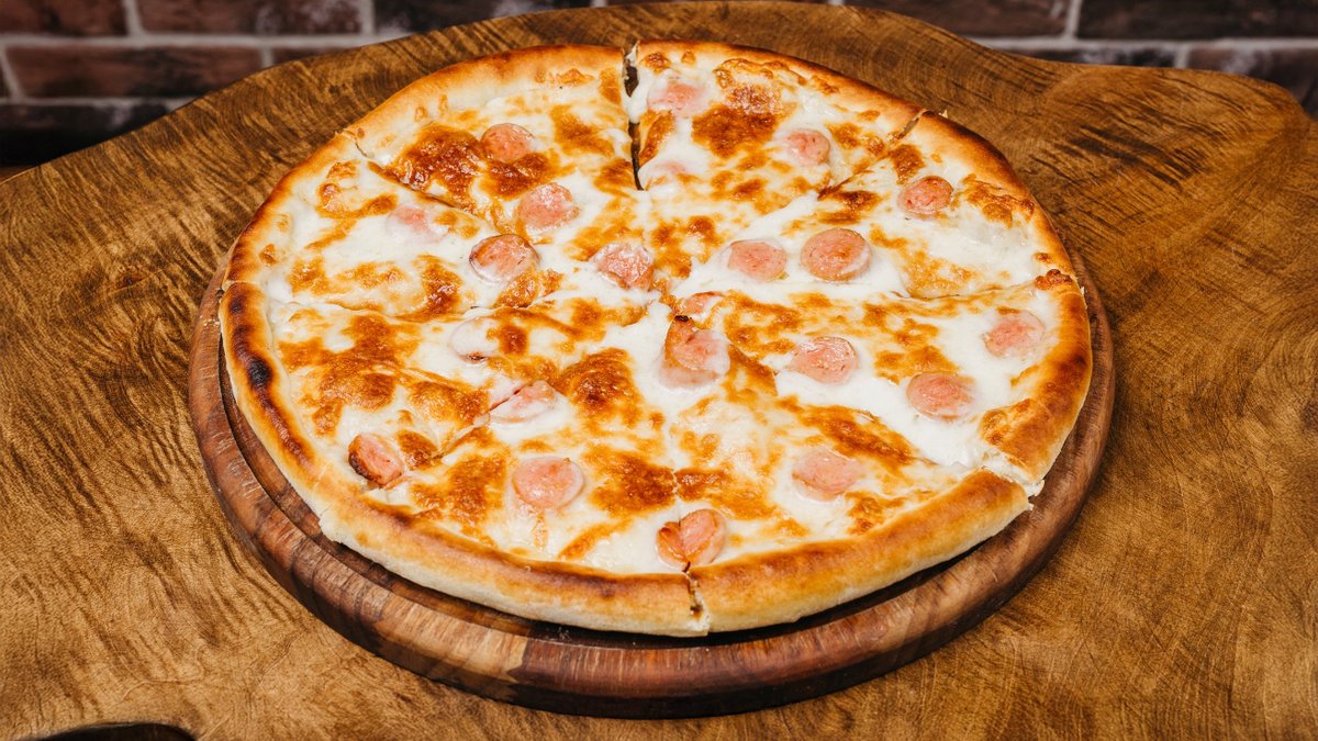 Pizza xəmiri, sosis, pendir, pomidor sousu