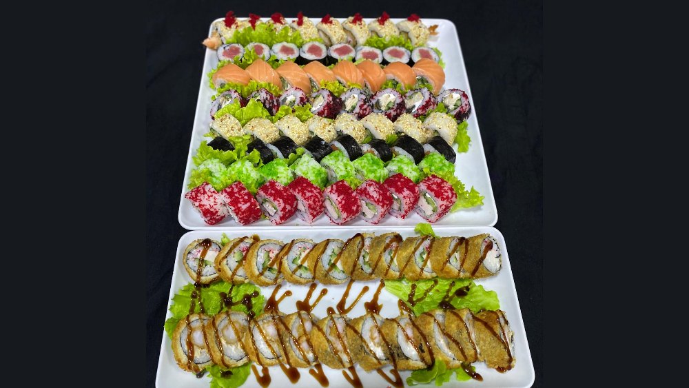 California maki roll, philadelphia roll, tempura maki roll, onion roll, osaka roll, hot maguro roll