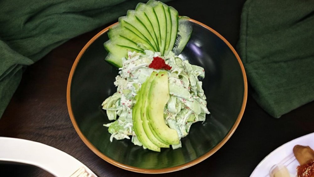Crab sticks, lettuce, cucumber and seaweed with japanese mayo