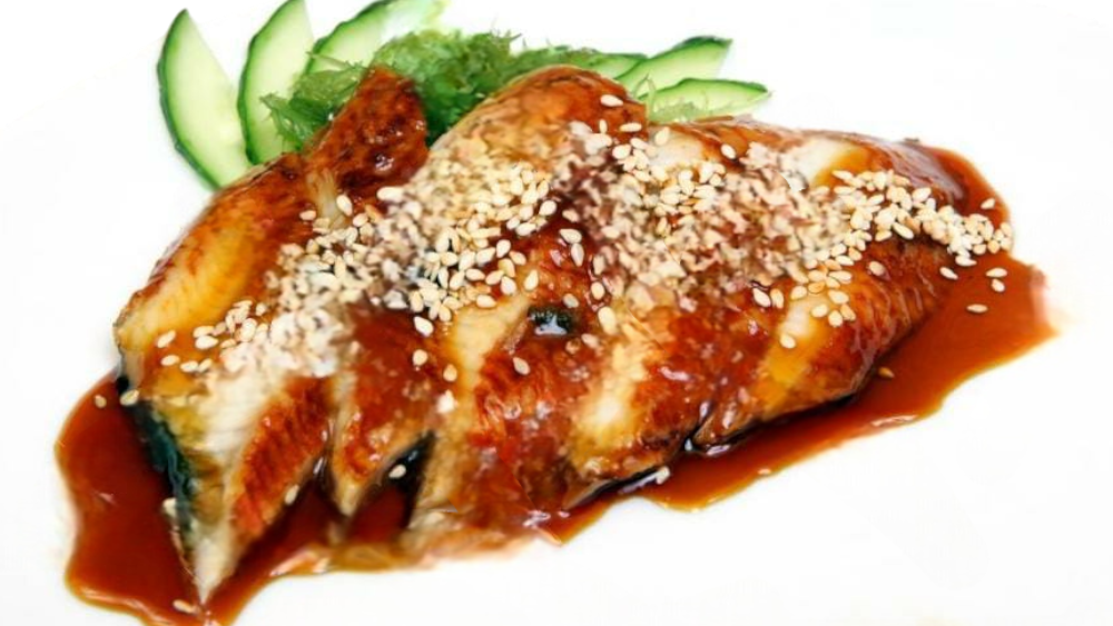 Sweet eel, lettuce and seaweed with sweet eel sauce dressing