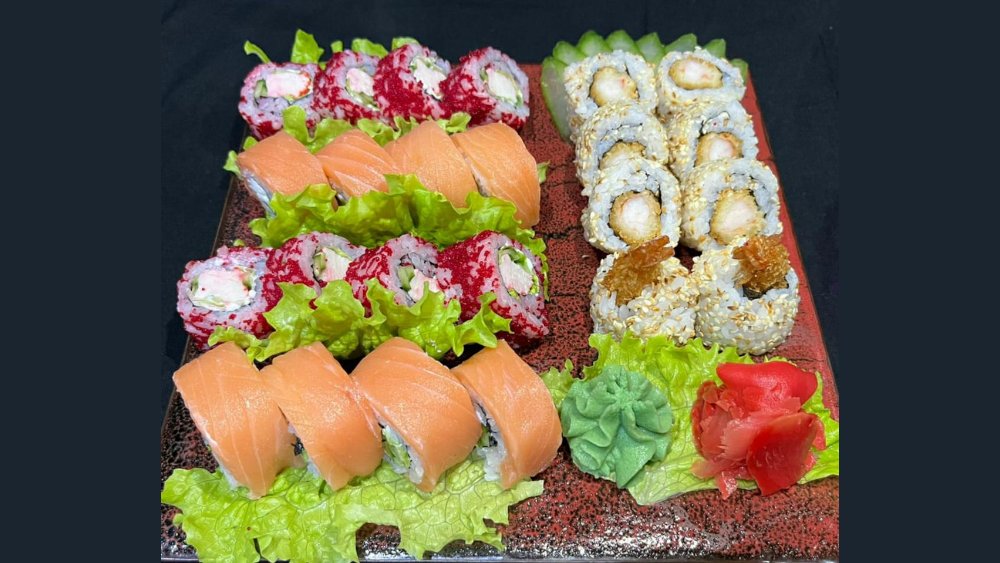California Maki (4 pcs.), Philadelphia Roll (4 pcs.), Prawn California (4 pcs.), Norwegian Roll (4 pcs.), Tempura Maki (4 pcs.), Alaska Roll (4 pcs.)