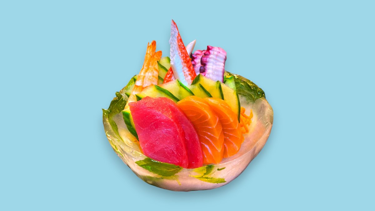 Shrimps, mussel, octopus, crab sticks, squid, spring onion and seaweed