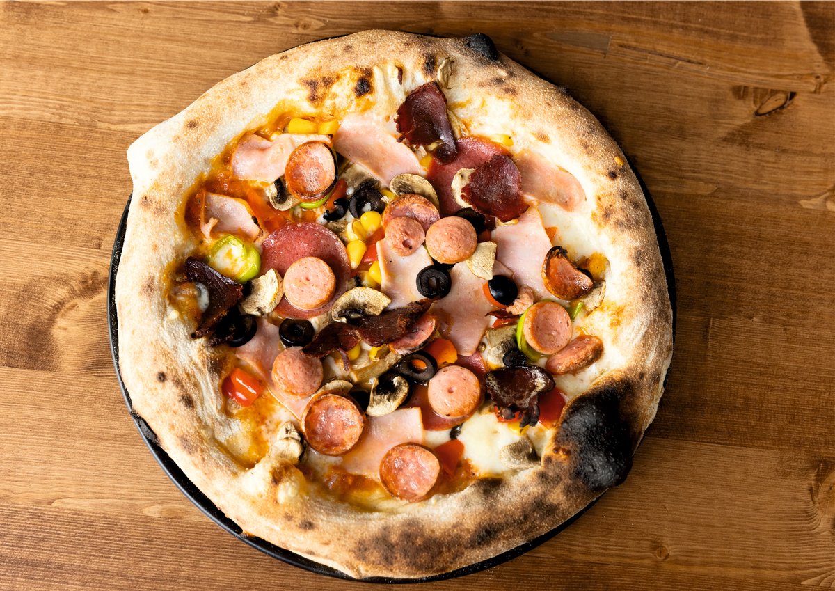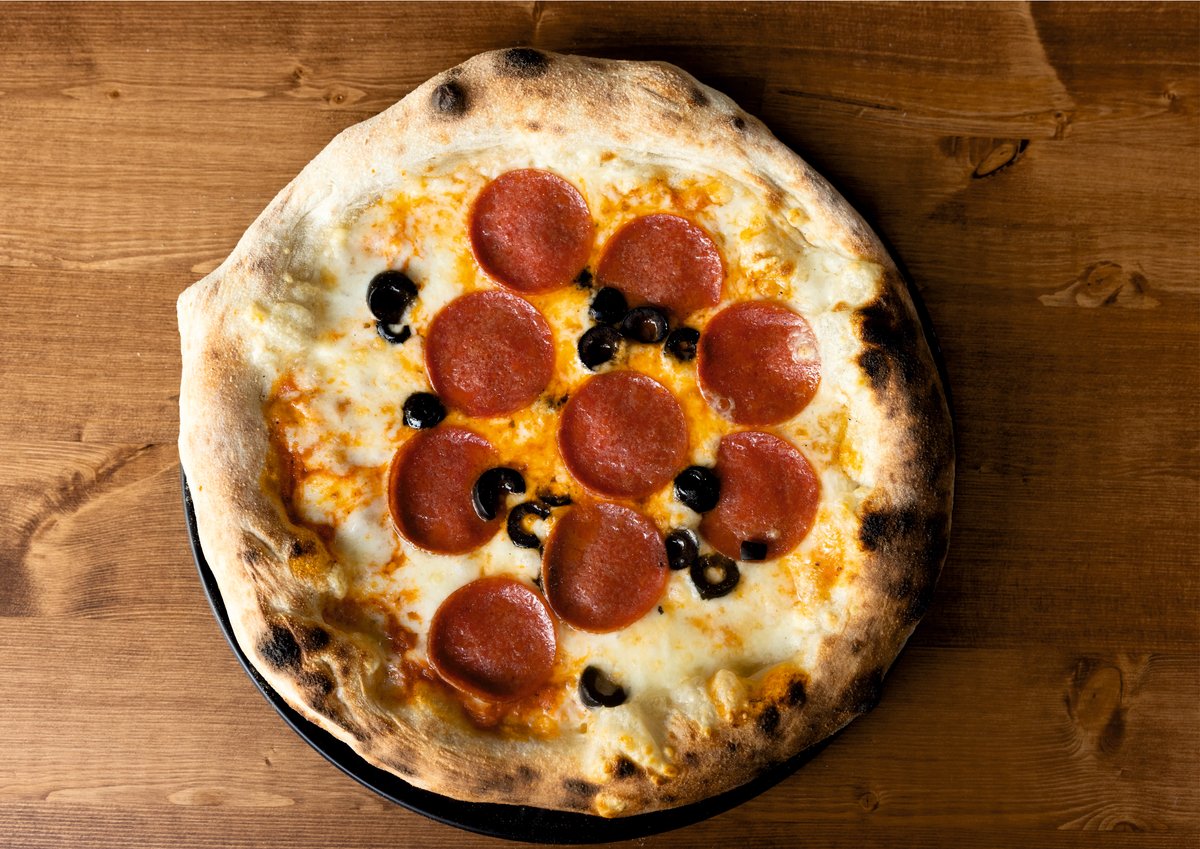 Xəmir, tomat sousu, mozzarella pendiri, pepperoni