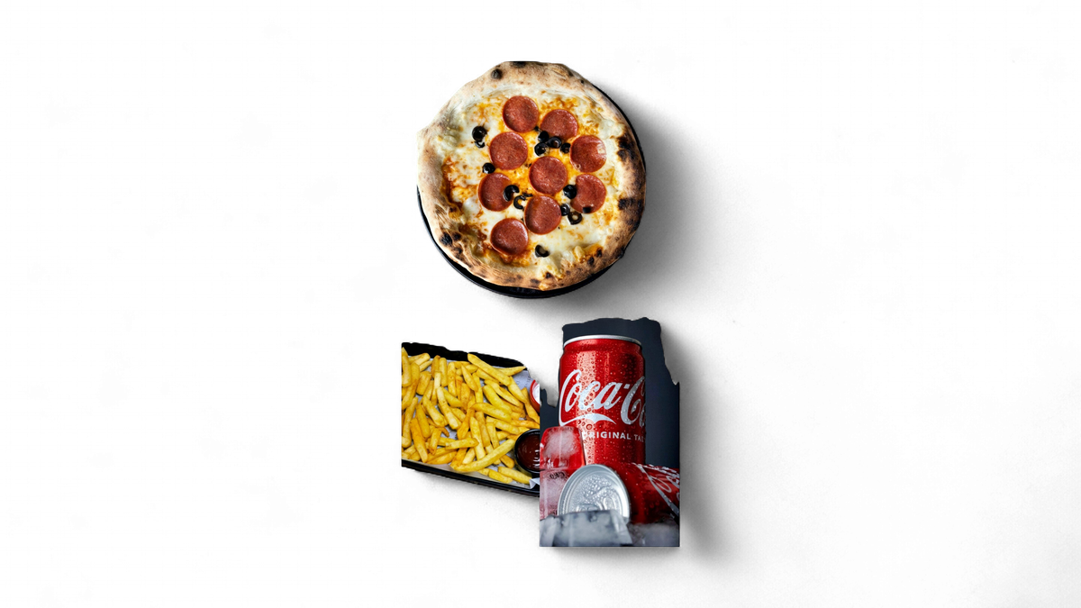 1 Pepperoni 4 fri 4 mini chiken burger 4 cola
