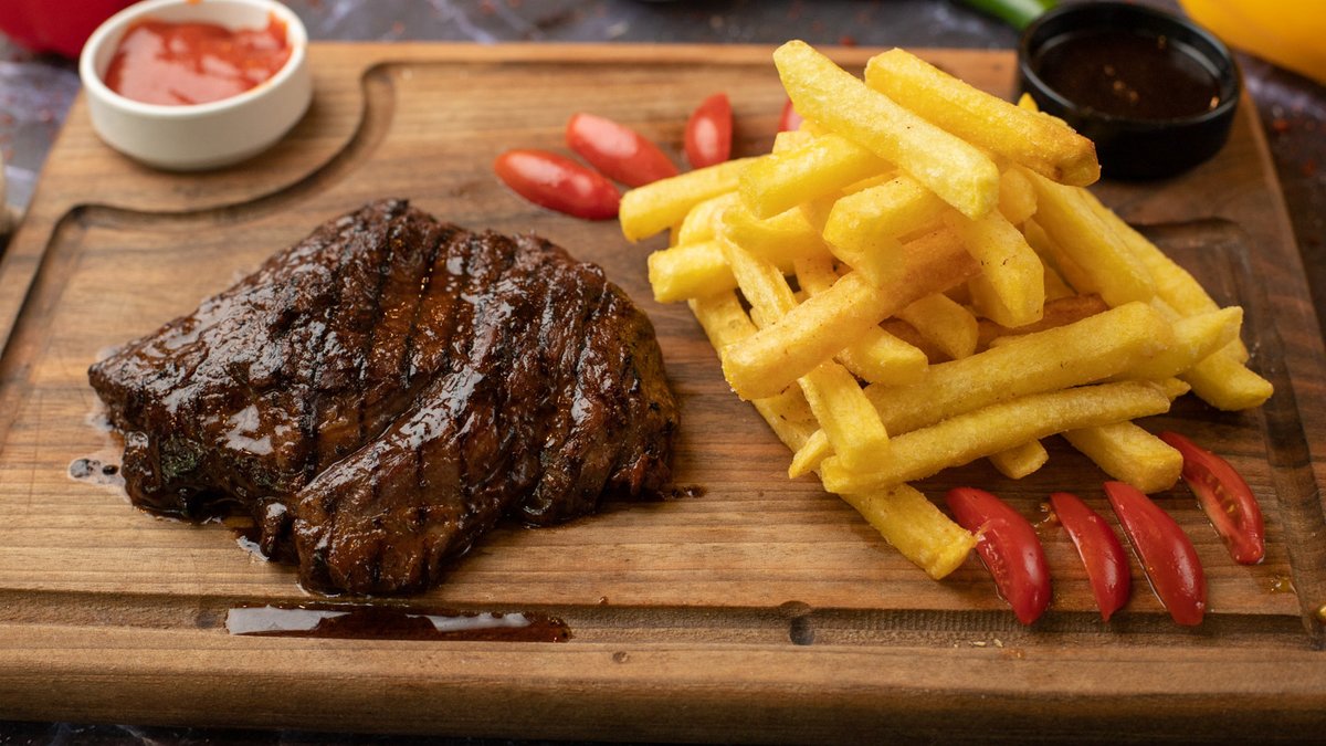 Toyuq filesi, panka ,yumurta, şirin çili, kartof fri