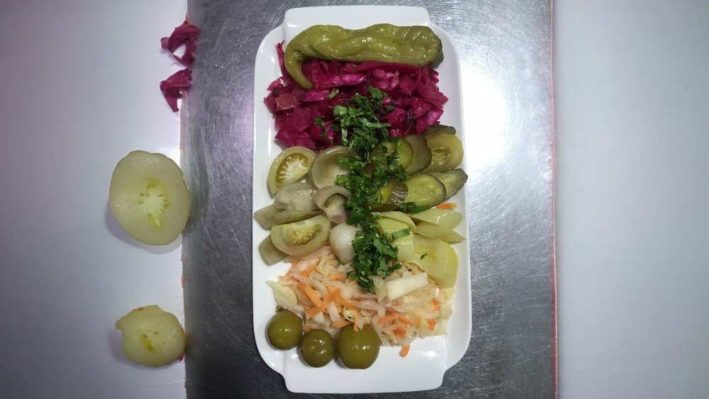 Pomidor, xiyar, qara zeytun, soğan, ağ pendir, bolqar bibəri, aysberq kahısı