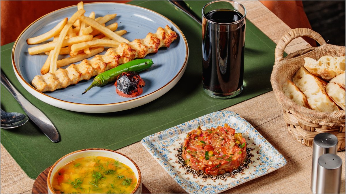 mal əti,pomidor,bibər acı,sous begendi,kartof fri,yağ kərə,isgəndər sousu