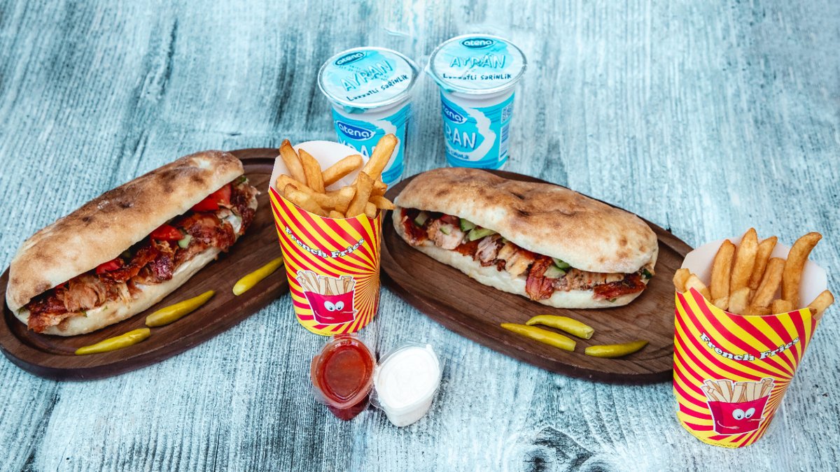 Çörəkdə Dönər (2 Əd) + Kartof Fri (2 Əd) + Ayran (2 Əd) + Bibər (10 Əd)