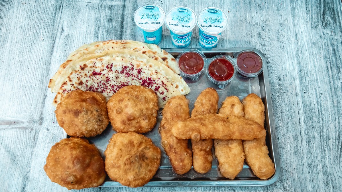 Piroşki Kartoflu (5 Əd) + Piroşki Ətli (2 Əd) + Piroşki Ciyərli (2 Əd) + Qarın Qutabı (4 Əd) + Ayran (3 Əd)