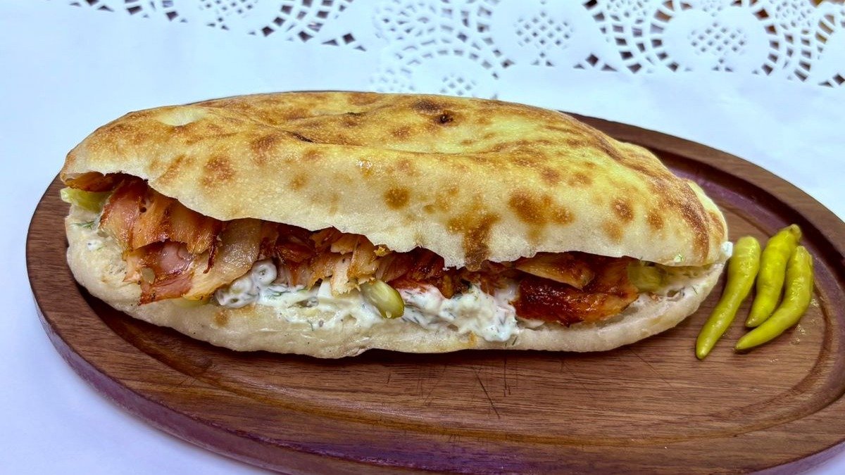 Dönər Çörəkdə (1 Əd) + Piroşki Kartoflu (4 Əd) + Qarın Qutabı (2 Əd) + Ayran (2 Əd)