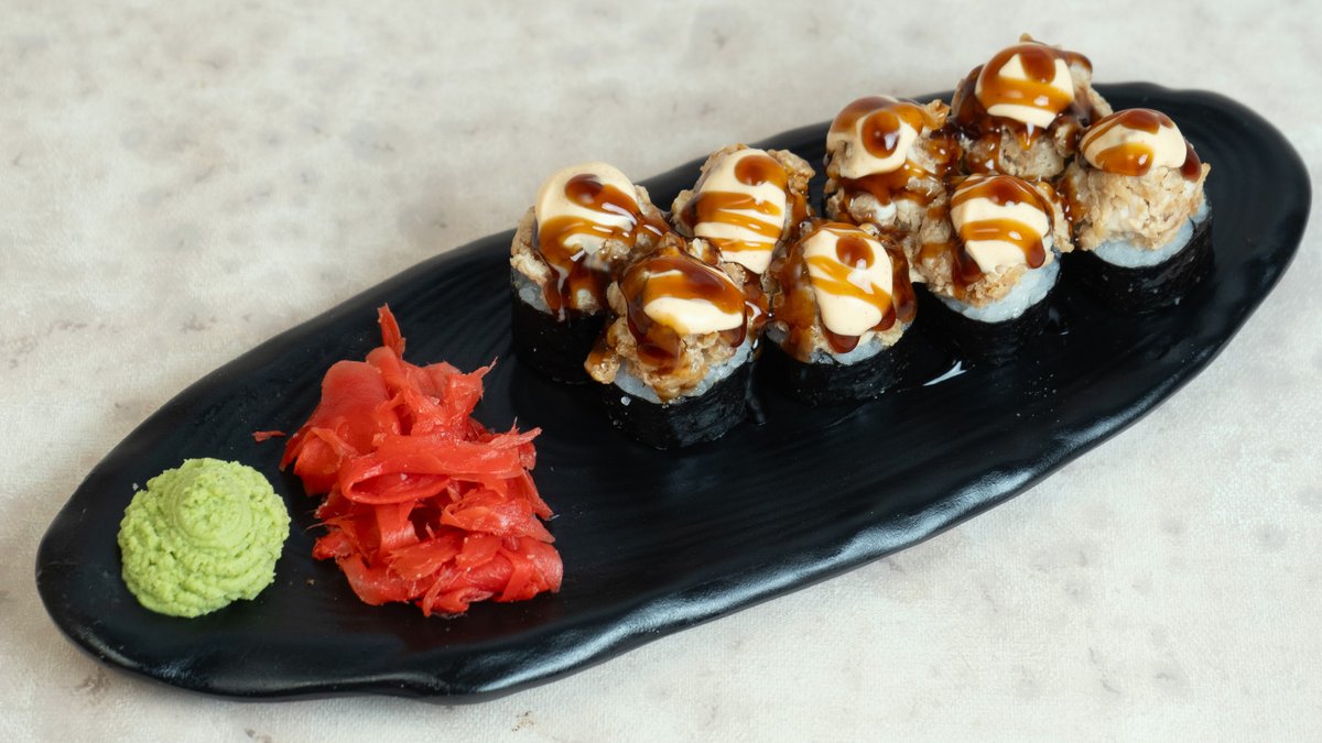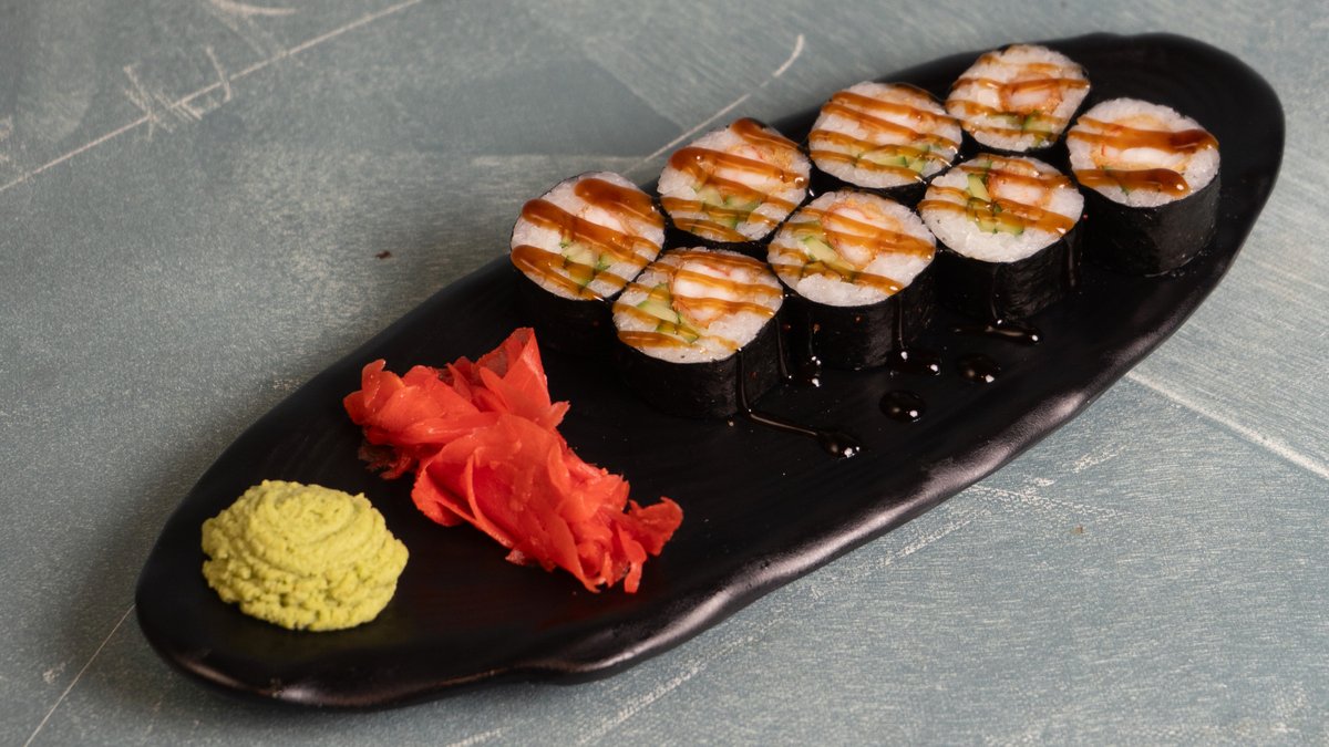 Duyu, nori, krem pendir, xiyar, krevetka, unagi sous