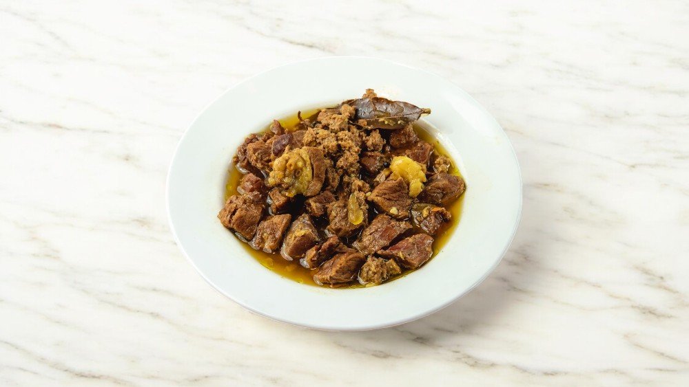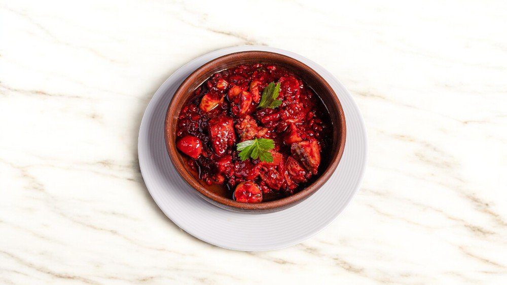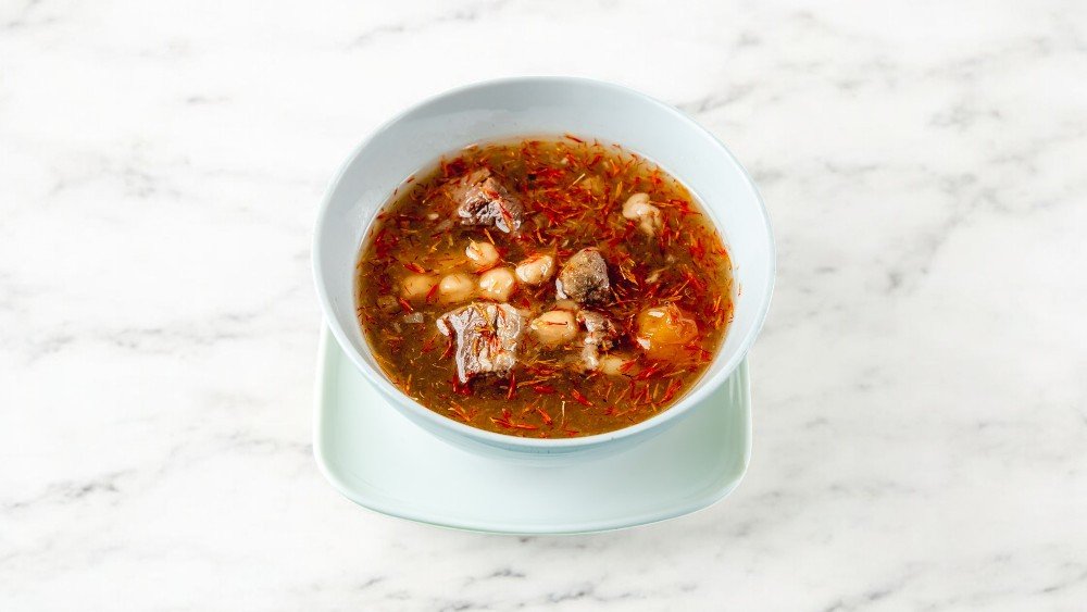 Quzu əti, quzu quyruğu, noxud, şabalıd, turşu albalı, soğan, zəfəran