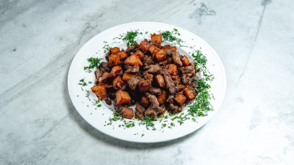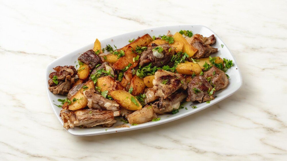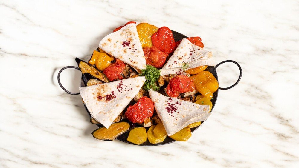 Kartof, badımcan, göbələk, soğan, acı və bolqar bibəri, pomidor, quzu əti