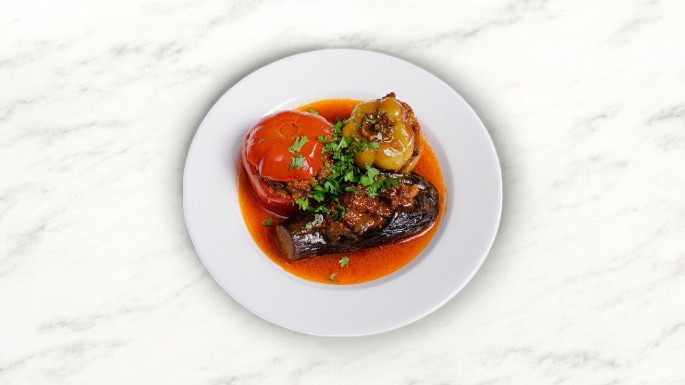 Kartof, badımcan, göbələk, soğan, acı və bolqar bibəri, pomidor, quzu əti