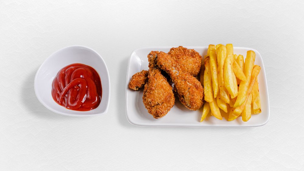 Toyuq nuggetsi, sous, kartof fri