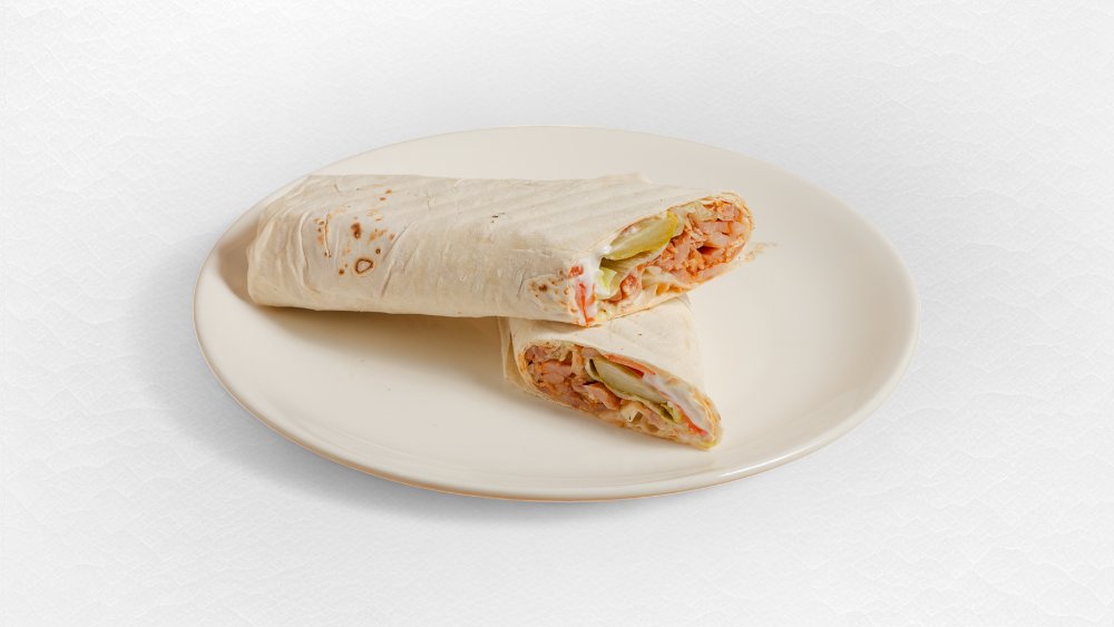 Lavaş, toyuq filesi, pomidor, kahı, sous
