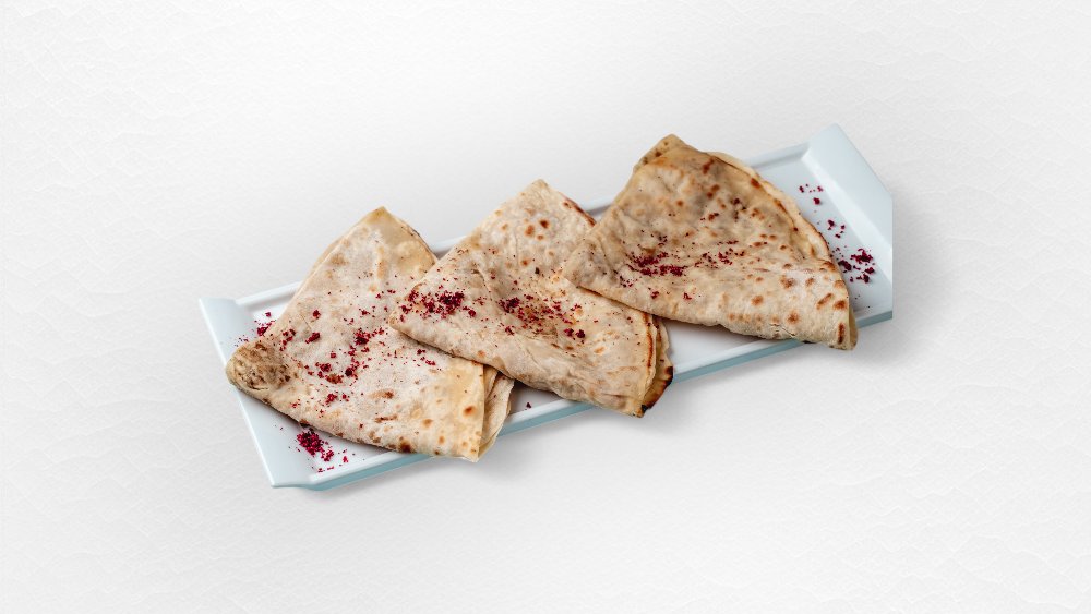 Lavaş, köz toyuq, pomidor, kahı, sous