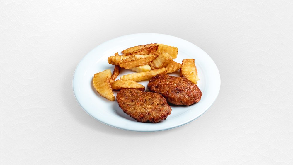 Kotlet, kartof qızartması, sous