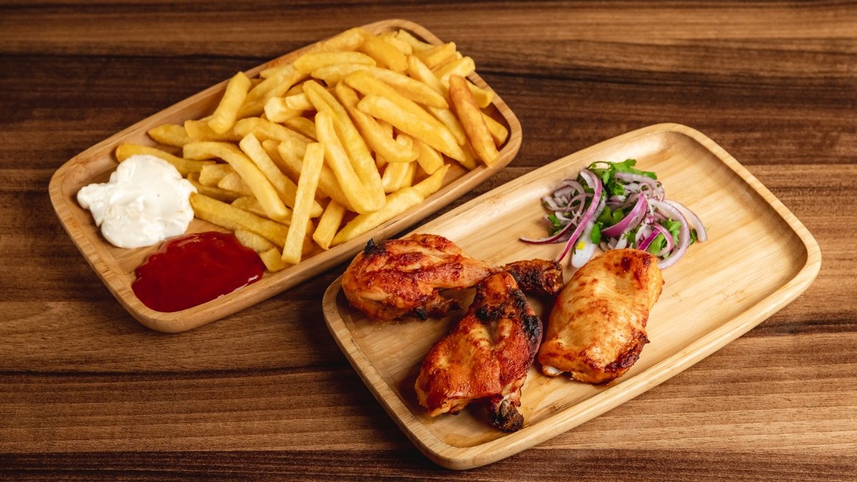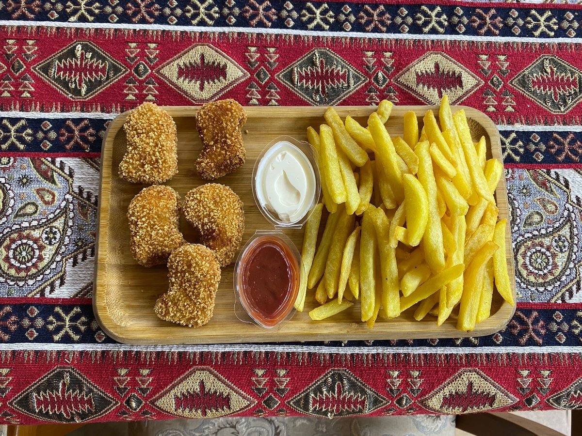 Toyuq lulesi 1 Toyuq kababi 1 Gobelek Supu 1 Free 1 Nuggets 1 Cola banka 0,5