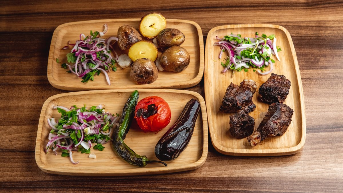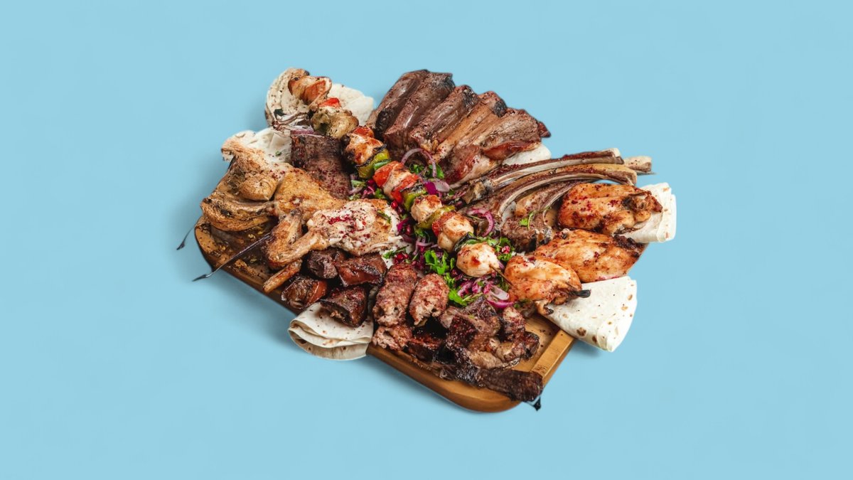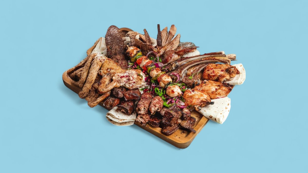 Antrikot 2 Dana basdirma 2 Toyuq 2 Kartof quyruqlu 2 Lule 2 Terevez 2 Pendir 1 Sveji salat 1 Acika 2 Suzme 2 Duses 1 Terxun 1 Cola 1 1lt