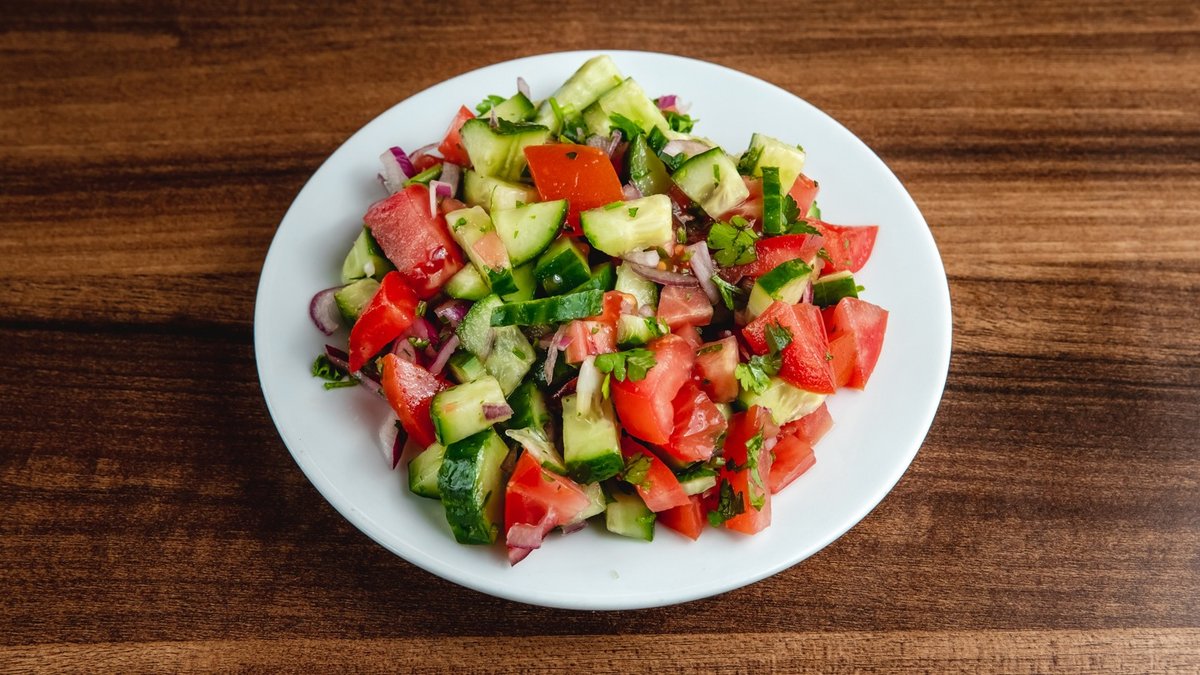 Pomidor, xiyar, pendir, zeytun yağı, göyərti