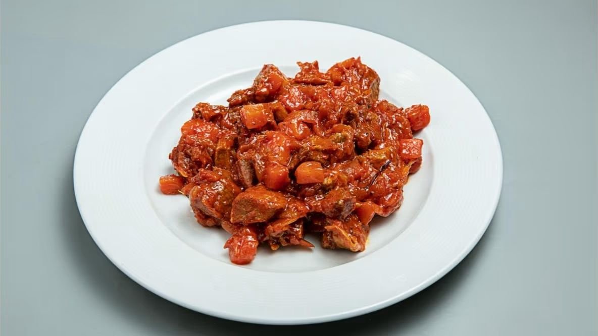 Toyuq əti, bibər, pomidor, yumurta, soğan