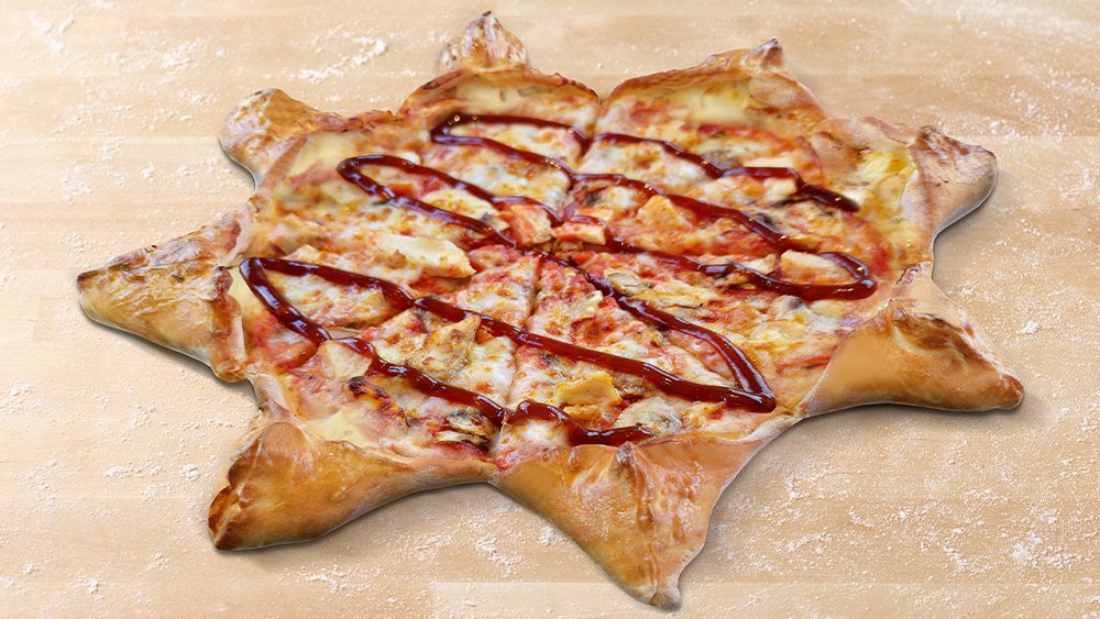 Pizza Sousu, Qril Toyuğu, Göbələk, Mozzarella, Barbekyu Sousu, Sarımsaq Sousu
