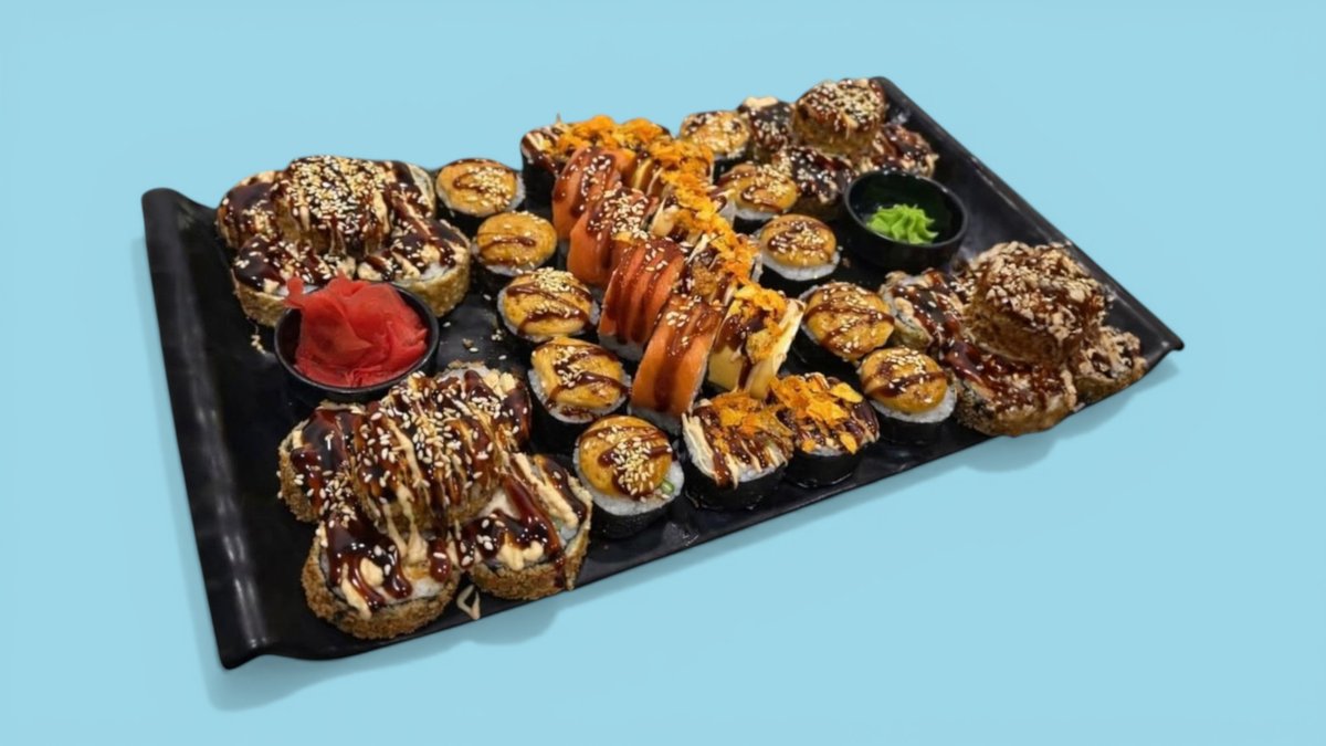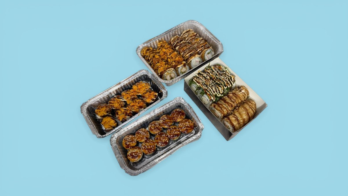 Tempura hot (10 eded) , Chicken hot (10 eded) ,Baked roll (10 eded) , Fladelfiya (4 eded) , Chesse (4 eded) , Kani maki ( 4 eded )