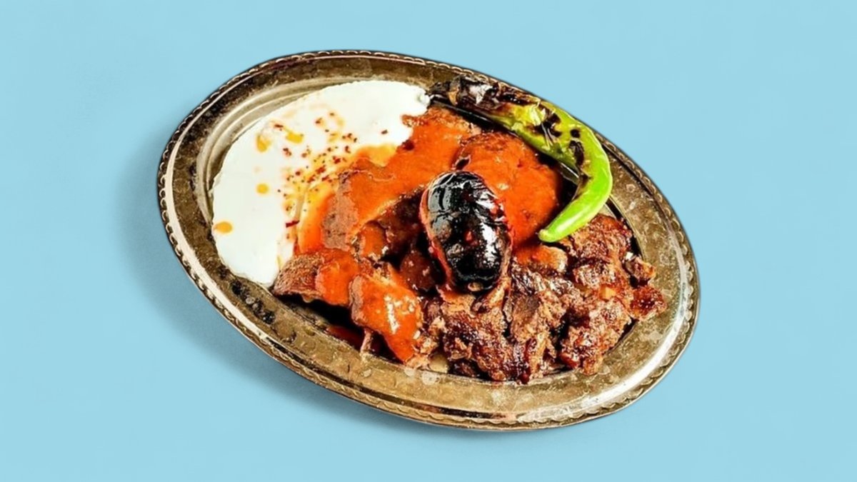Ət kəstəbəsi, toyuq dönəri çörəkdə, ayran
