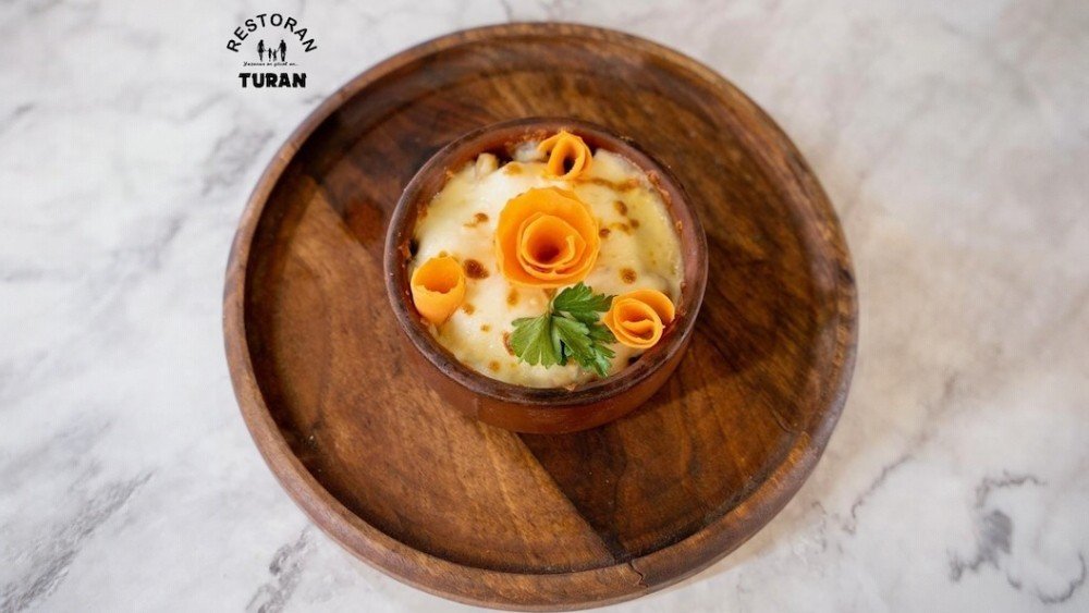 Toyuq, göbələk, krem, pendir, çörək.