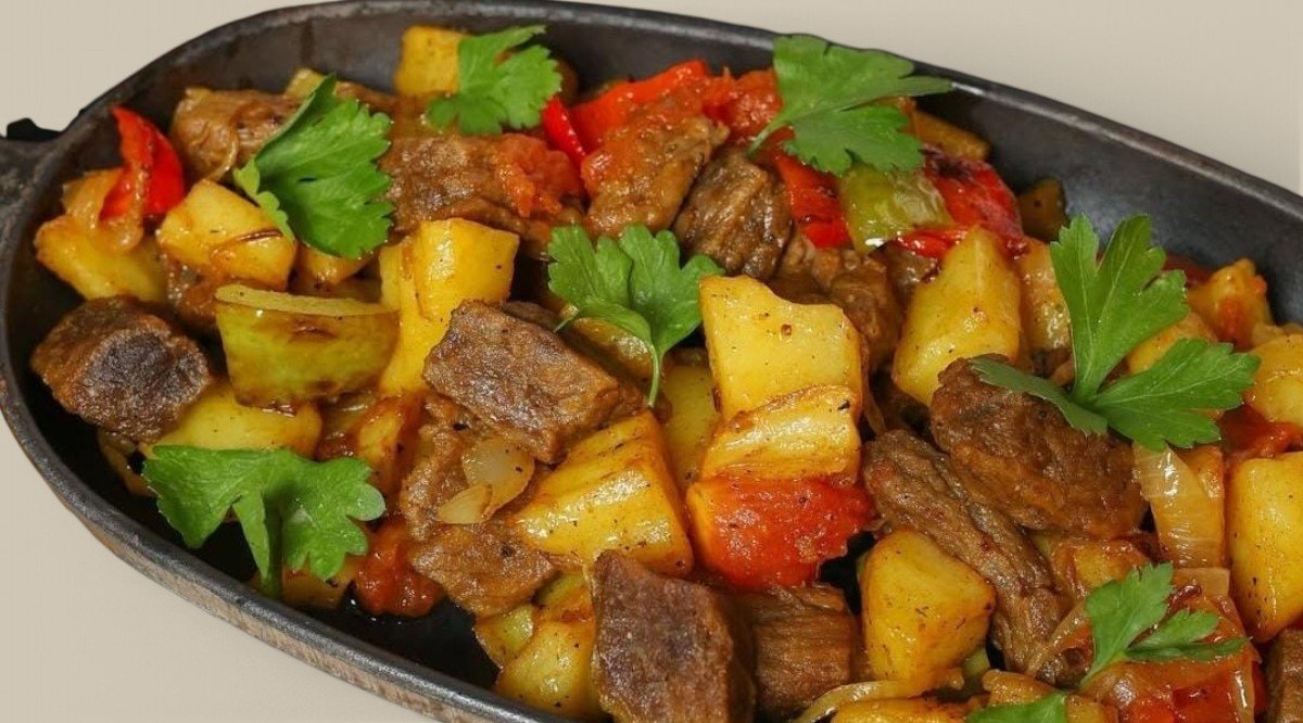 Mal əti, bibər, kartof, soğan, kərə yağı