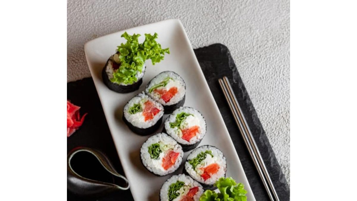Сяки маки хот унаги маки хот тунец маки хот калифорния лайт цезарь темпура филадельфия с огурцом