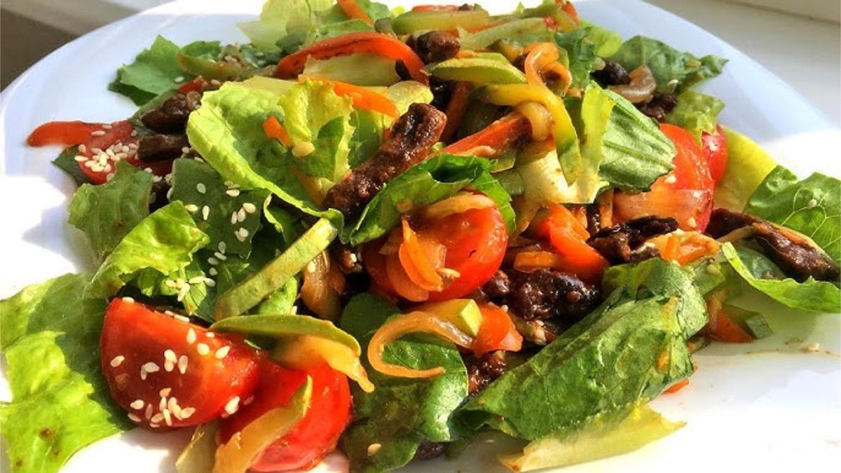 Огурцы помидоры фасоль стручковый кабачки бон филе микс салат соус удон зелень