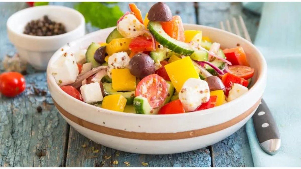 Помидоры огурцы перец светофор красный лук оливки маслины сыр брынза