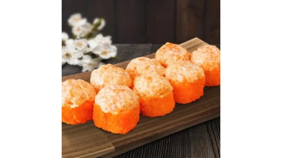 Рис сыр творожный замес краба икра масаго огурцы соус унаги