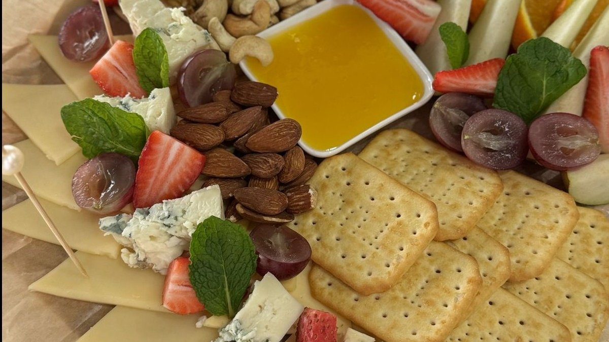 Пармезан, дор блю, моцарелла, гауда, камамбер, мед, грецкие орехи и виноград
