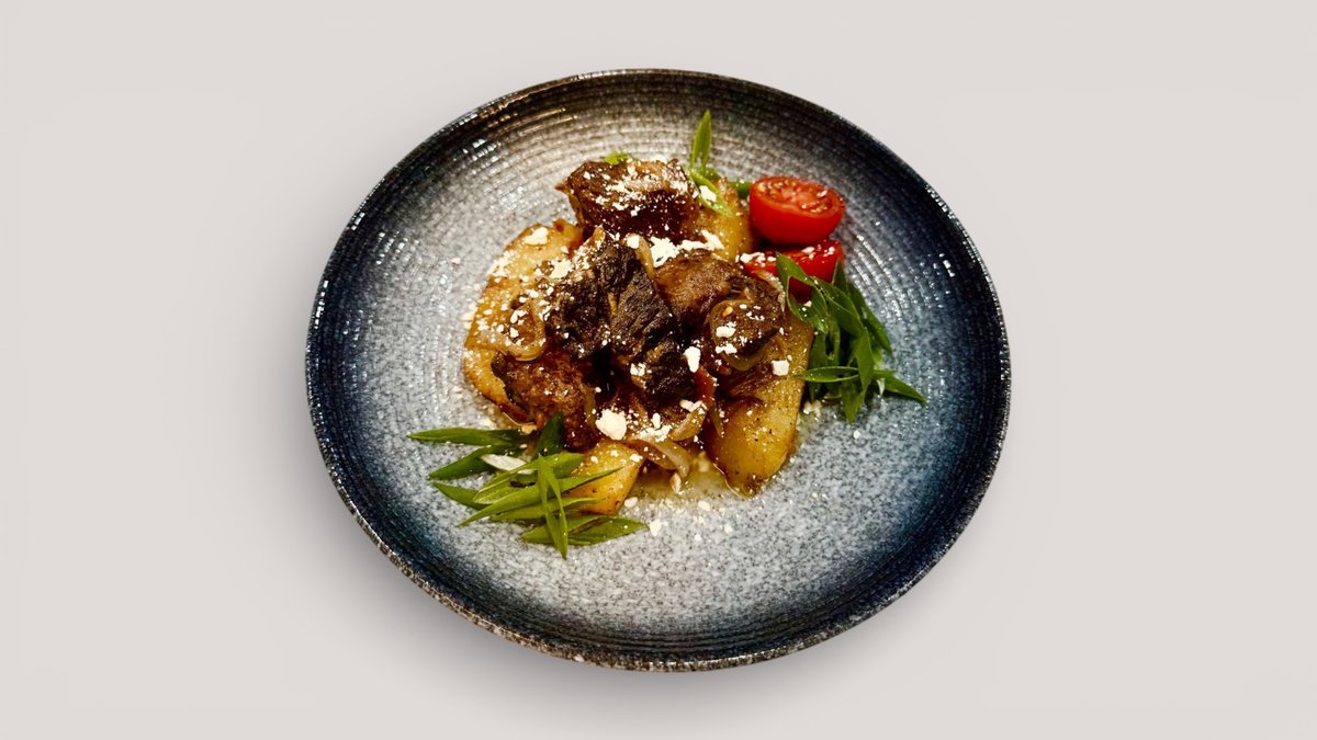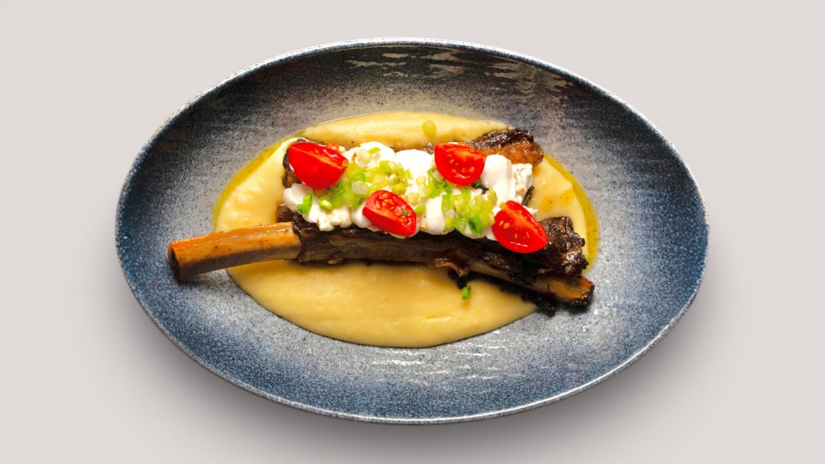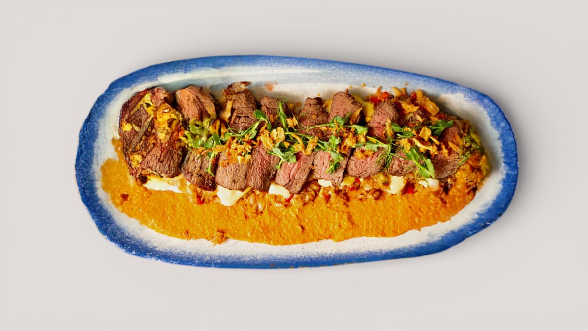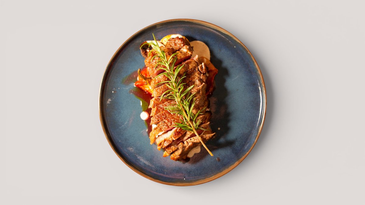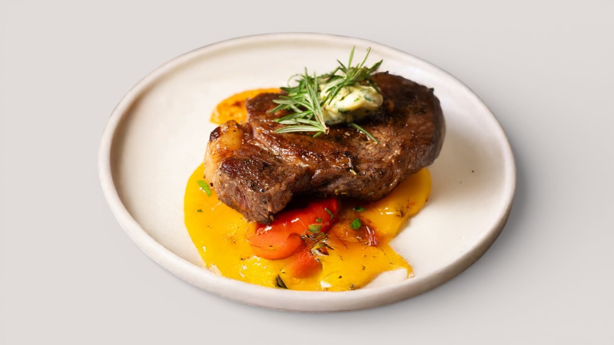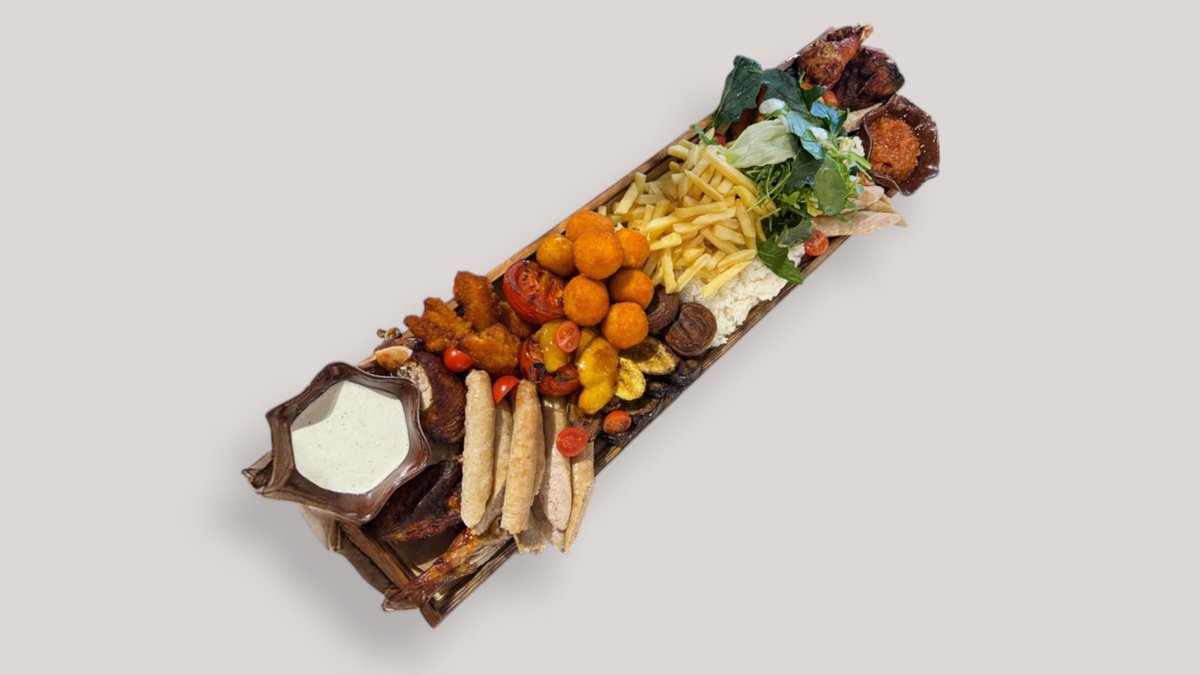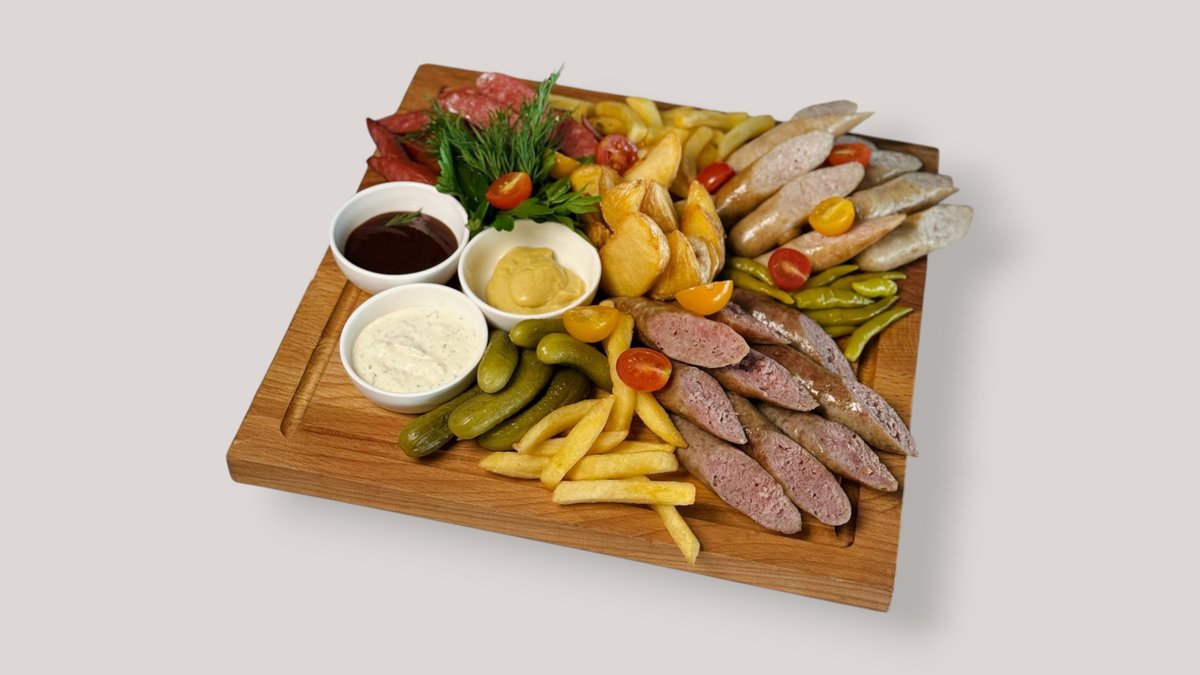 (стейк Рибай -2, колбаски говяжий – 1, говяжий ребра – 1, овощи гриль -2, хрустящие картофельные лодочки – 2)