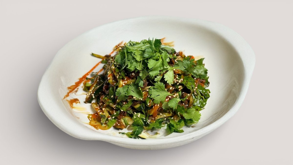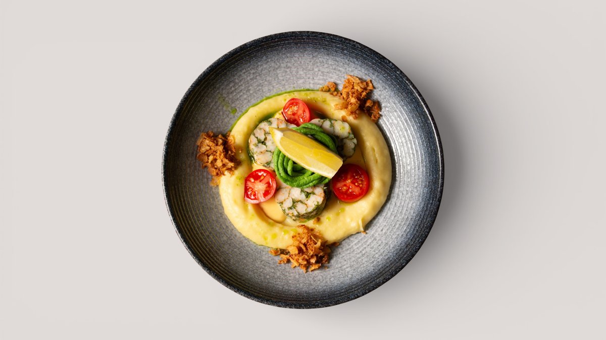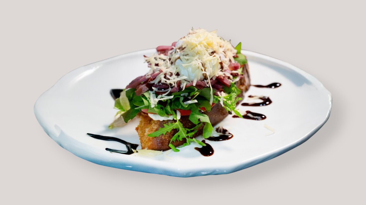 Хрустящая бриошь с казы, творожным сыром, шпинатом и Скрэмблом