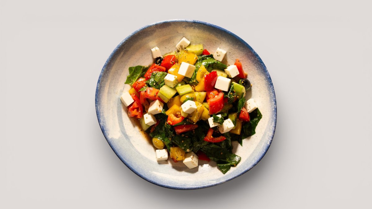 Помидоры, огурцы, болгарский перец, помидоры черри, микс из свежей зелени и салатов, брынза и редиска