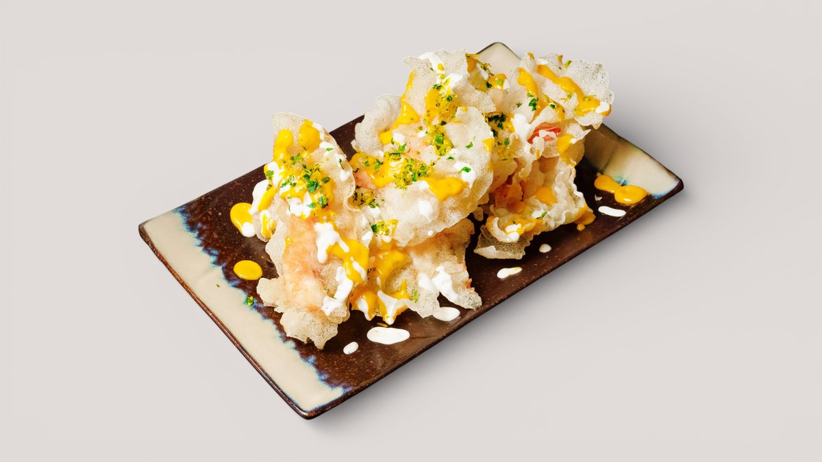 Темпура из тигровых креветок в рисовой бумаге с соусом Манго