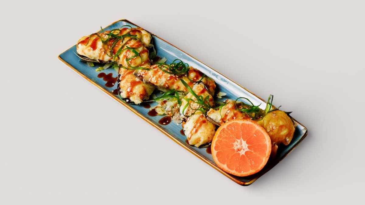 Запеченные мидии под сыром Моцарелла с диким рисом