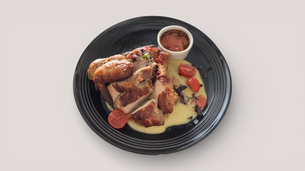 (пол цыпленка – 2, куриные колбаски – 2, куриные шарики – 1, наггетсы – 1, хрустящие картофельные лодочки – 1, овощи на гриле, рис припущенный)