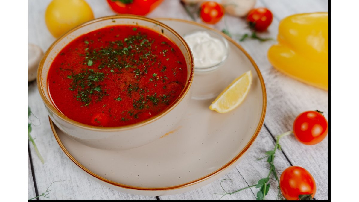 Говядина,говяжий бульон,лук,томатная паста,соленые огурцы,маслины,лимон,сметана.
