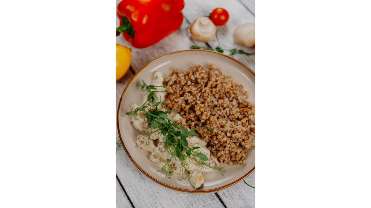 Курица,сливки,сыр,гречка.